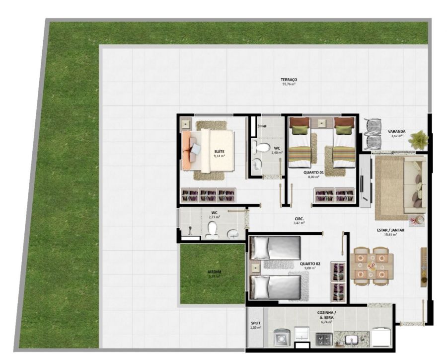 Área Total: 71,56 m²Área Privativa: 71,56 m²